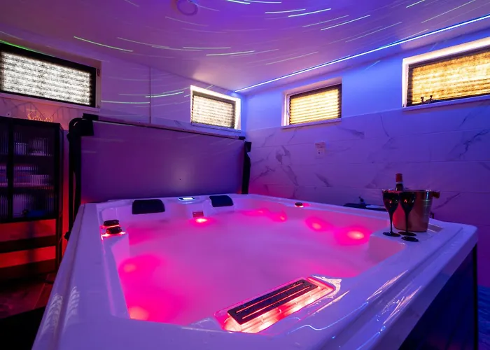 - ❓Quali sono le strutture termali disponibili nell'appartamento Hideaway?Presso l'appartamento Hideaway gli ospiti possono rilassarsi con una jacuzzi, una vasca idromassaggio e una sauna.